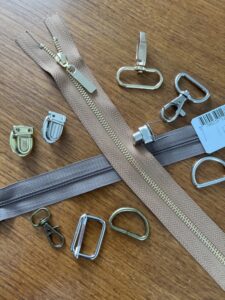Il faut le cas échéant imaginer les fermetures (zip, pressions, aimants…….) et ne pas oublier les fils assortis !