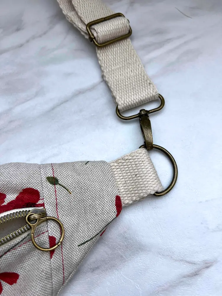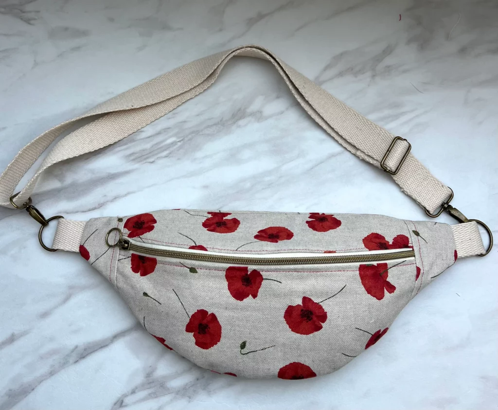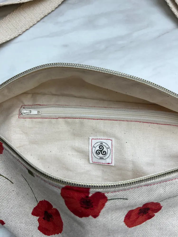 Sac Banane en coton/lin de qualité, imprimé coquelicots, doublé en coton écru.