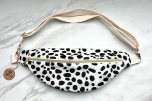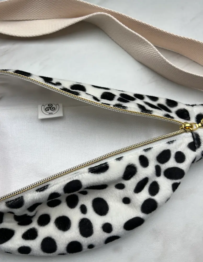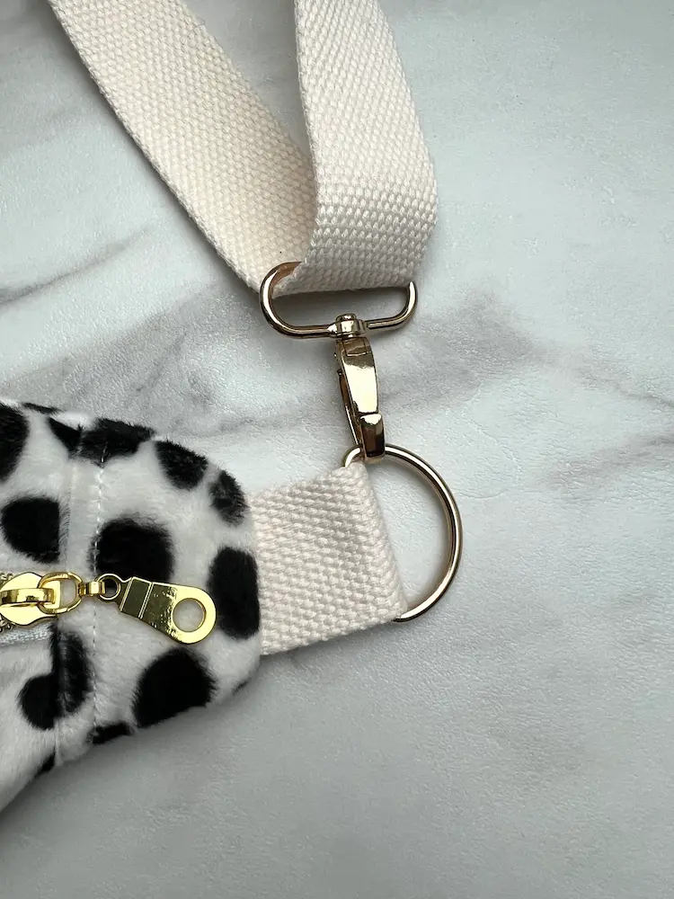 Doublure unie en coton blanc avec sangle écrue de 3cm de large sur environ 1m et 2 mousquetons permettant le changement de sangle.